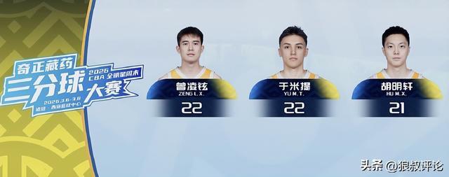 三分球大赛的预赛中,于米提、曾凌铉投出了22分的高分,携手投出21分的胡明轩晋级决赛。