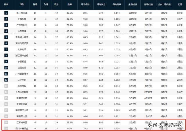 首先是危险的球队,四川目前处于末班车的位置,0胜23负的战绩肯定是历史倒数级别,而江苏以6胜17负排在倒数第二。